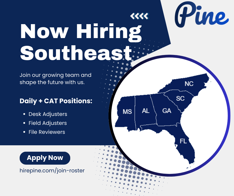If you’re a licensed adjuster ready for steady work and a team that’s got your back, apply today at www.hirepine.com/join-roster.